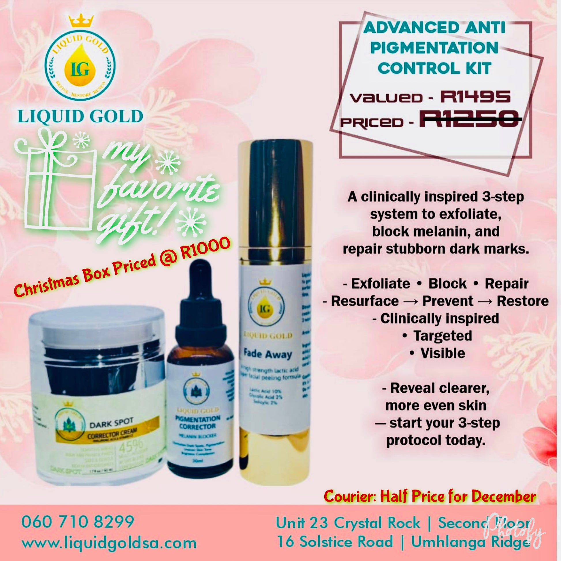 It works well on pigmentation from sun-damage, melasma, or the common post-inflammatory pigmentation, dark spots that even improve under eye circles that are a result of hyperpigmentation.