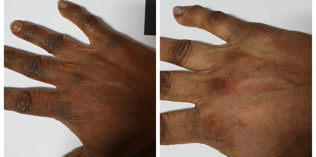 It works well on pigmentation from sun-damage, melasma, or the common post-inflammatory pigmentation, dark spots that even improve under eye circles that are a result of hyperpigmentation.