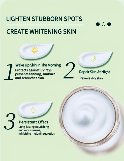 Finally, the star of our bundle, the Dermaglow Facecream with kojic acid. This luxurious face cream combines the moisturizing properties of a deeply hydrating cream with the brightening effects of kojic acid. Kojic acid, a natural skin lightening ingredient, effectively reduces the appearance of age spots, sun spots, and hyperpigmentation, promoting a more youthful and even complexion. The face cream's rich and velvety texture absorbs easily into the skin, providing long-lasting hydration while delivering a powerful dose of antioxidants and vitamins. Regular use of this face cream will leave your skin feeling soft, supple, and glowing with radiance.