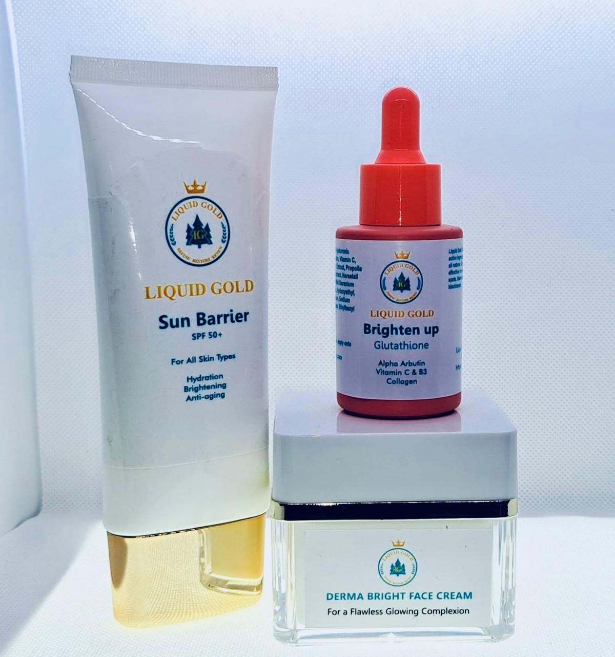 Introducing our comprehensive Skin Brightening Bundle, featuring the powerful combination of our Brightening Cleaner, Carrot Toner, and Dermaglow Facecream with kojic acid. This trio is designed to refresh, rejuvenate, and nourish your skin, revealing a brighter, more radiant complexion.